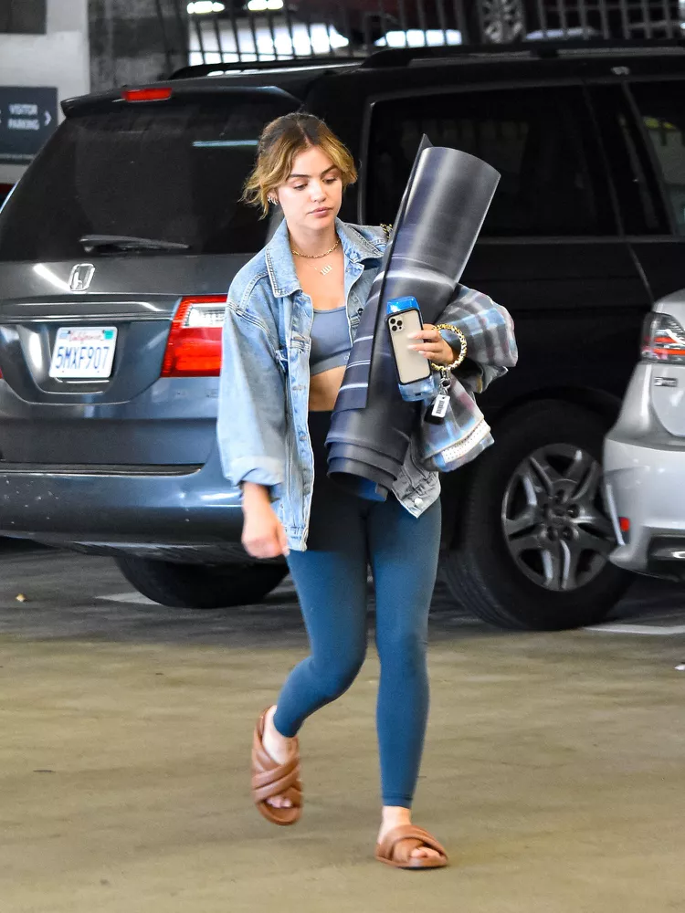 For instance, actress Lucy Hale was recently spotted wearing a pair of padded sandals while on her way to the gym. The Pretty Little Liars star paired them with workout leggings, a sports bra, and an oversized denim jacket, proving their versatility and importance in your wardrobe rotation.