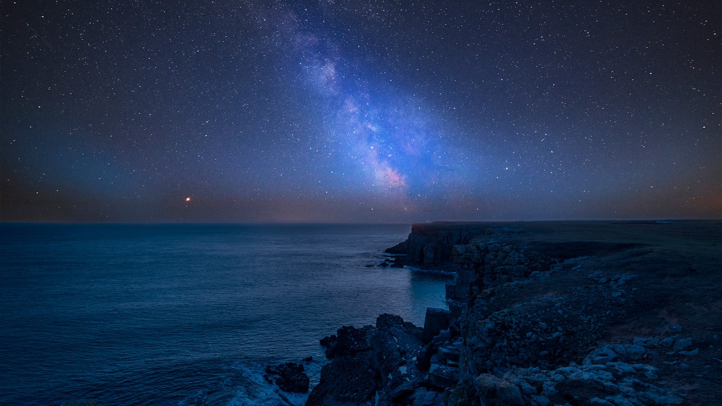 If it’s sea, not mountains, you’re after, the Pembrokeshire coast, jutting out from southwest Wales, is full of rocky coves and soaring cliffs suitable for atmospheric astrophotography.