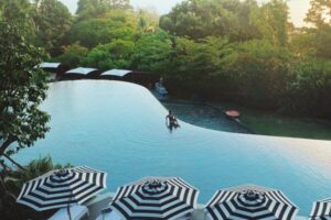 Villa Lulito is a sophisticated colonial retreat situated in the vibrant center of upscale Seminyak, just moments from Petitenget Beach on Bali’s sunset coast. This fully serviced villa creates a refined atmosphere perfect for family vacations or group retreats. Four elegant plantation-style pavilions surround a stunning 15-meter azure pool that serves as a remarkable centerpiece for intimate gatherings. The two-level sleeping pavilion accommodates four exquisite bedrooms, while three contemporary open living areas provide various spaces to relax, socialize, or engage in leisure activities. Guests may opt for formal dining in the stylish dining area or enjoy casual alfresco meals at the dining table nestled amidst the villa’s lush gardens.