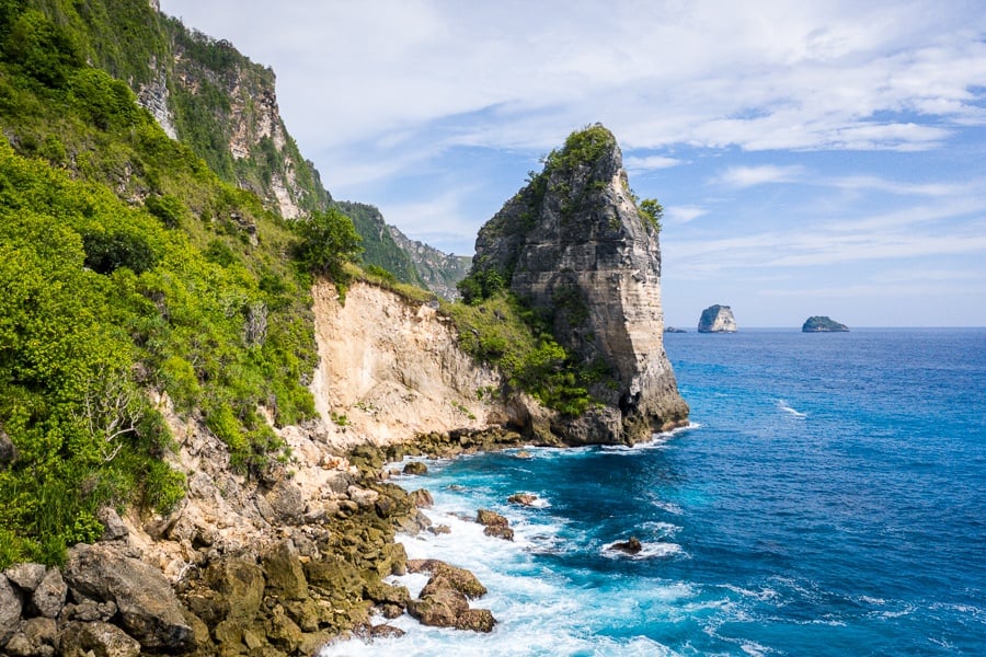 Batu Siha is located on the southwest side of Nusa Penida island. The trail can be accessed by car or scooter, approximately a 1-hour drive from the main docks and accommodations in northern Penida. If you choose to travel by scooter, exercise caution, as the road is rough and may be hazardous in certain areas without a slow approach! The footpath to Batu Siha can be somewhat difficult to navigate, with multiple paths leading to it. The best advice is to stick to the clearest trail and follow the river wash down the slope. The river wash is marked with a dotted line on Google Maps, which can serve as a helpful guide. If you’re looking for more information on traveling to Nusa Penida island, you can find additional details here.