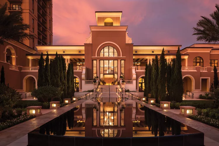 The Four Seasons Resort Orlando experience starts the moment you begin your drive through the magnificent Golden Oak neighborhood up to the impressive Spanish Revival-style property which first opened in August 2014. Upon entering the lobby, you’ll notice the first of many refined Disney-inspired touches: a sparkling chandelier that looks like bursting fireworks and a stairwell featuring a hidden Mickey or two. That entryway sets the tone for the resort as a whole. It’s on Disney property and offers plenty of theme park perks; however, it’s also true to the Four Seasons reputation for luxury spaces and experiences, making it a completely unique, upscale experience at Disney World.