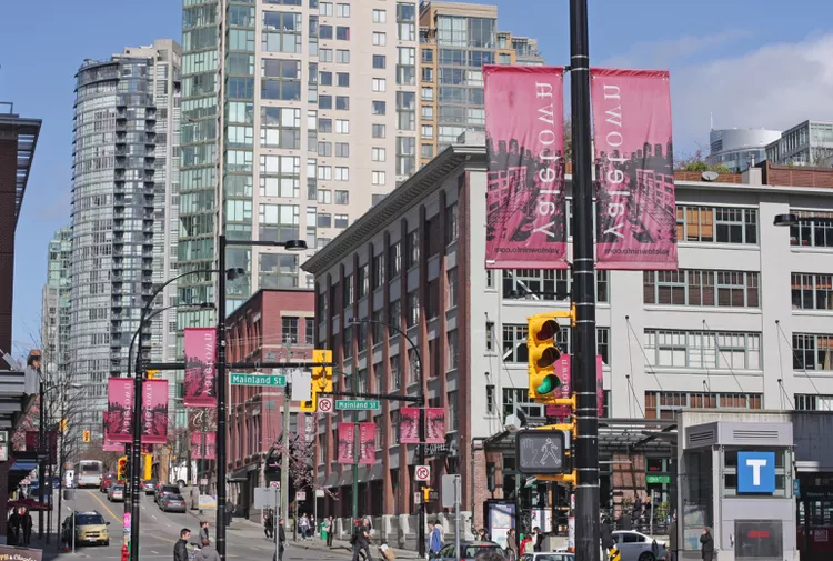 A street view of Vancouver’s Yaletown neighbourhood at Davie and Mainland on a spring morning.