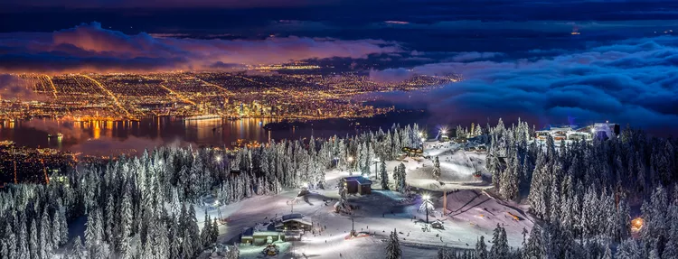 Grouse Mountain is the closest ski resort to downtown Vancouver, located just 15 minutes north of the city. With 26 ski and snowboard runs, four lifts, and four snowshoeing trails, this resort offers a variety of outdoor Alpine activities. Visitors can also enjoy the unique experience of outdoor ice skating in the winter.