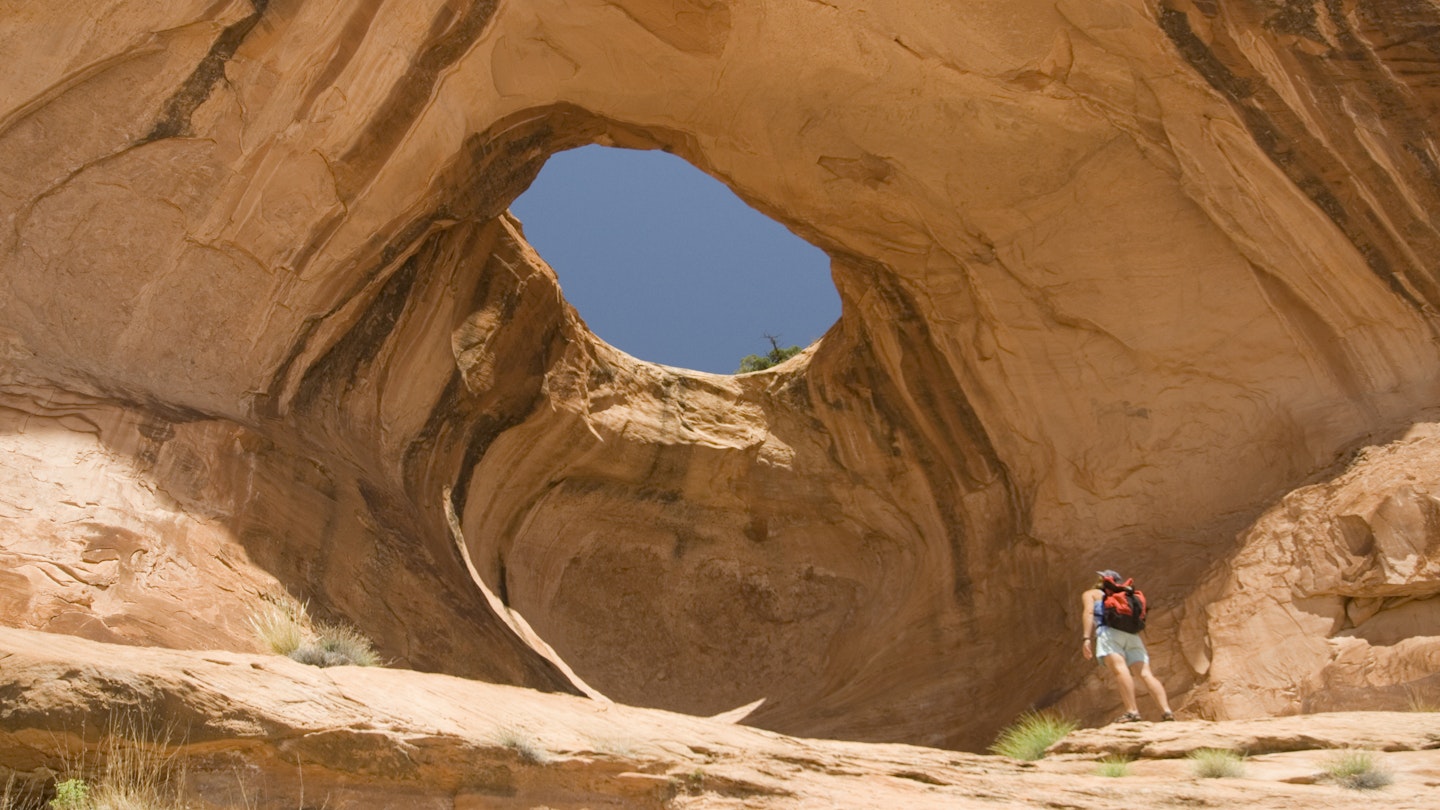 The five-mile hike through Grandstaff Canyon leads you to the impressive 243-foot Morning Glory Arch. Located just four short miles from Moab, it’s also bike-friendly. Visitors can expect breathtaking, red-canyon vistas, small streams, and plenty of company on the trail.