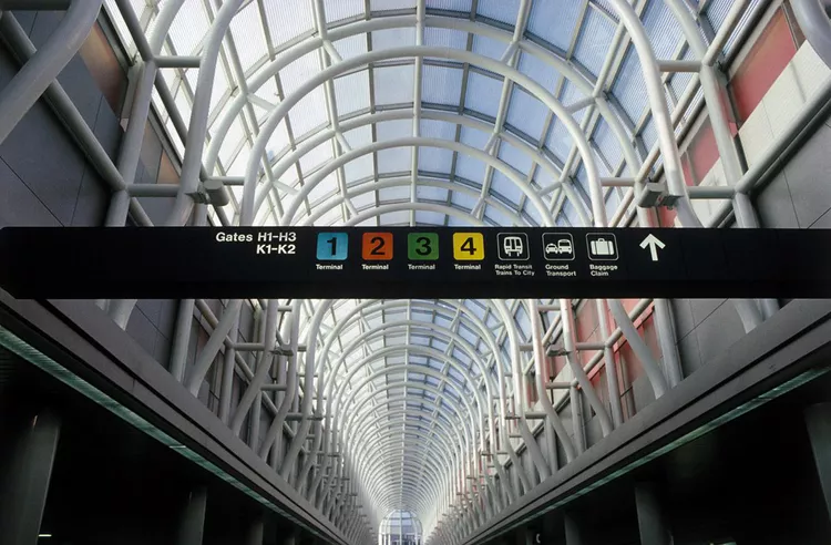 The CTA Blue Line train operates 24/7 between O’Hare and downtown Chicago. Trains arrive every eight minutes during peak hours and cost around $2 for a one-way ticket, taking about 45 minutes.