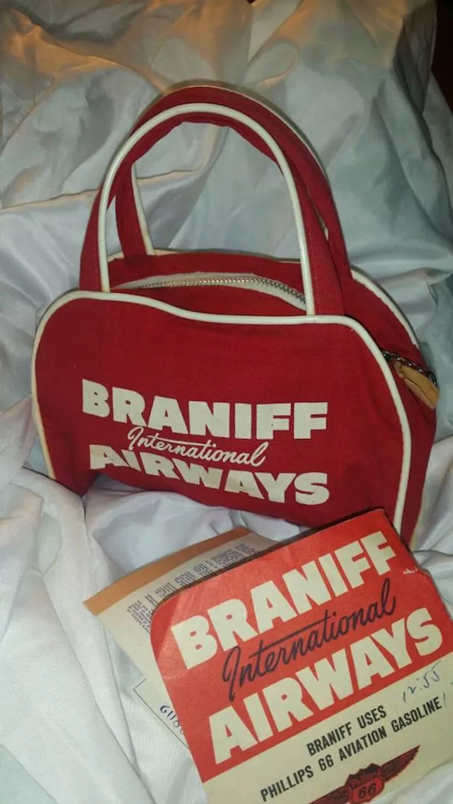 This bag from the New York City-based carrier, which was acquired by American Airlines in 2001, was created in 1961 to tout its Royal Ambassador service. The service was offered in a 20-seat first class cabin. The service was prominently featured in season 7 of the television show “Mad Men.”