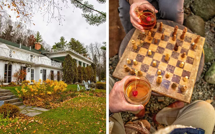 For instance, immerse yourself in century-old books in Manoir Hovey’s rustic library while enjoying French-pressed, artisanal tea beside a crackling fireplace.