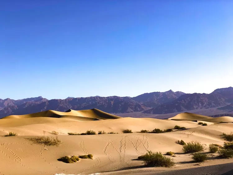 Located a few miles from Stovepipe Wells and a short hike from the road, the Mesquite Sand Dunes are the tallest sand dunes in California and among the highest in North America, rising 680 feet above a dry lake bed. Formed by wind and sand from the Cottonwood Mountains, the sand dunes cover an area approximately three miles long by one mile wide.