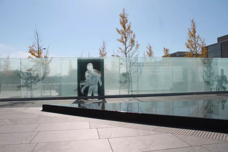 Designed to convey an interplay of strength and vulnerability, loss and renewal, the memorial features a star-shaped reflecting pool as its focal point. The design includes three walls of laminated glass adorned with text and images, alongside four bronze sculptures that narrate the story of the disabled veteran’s journey from service through trauma, healing, and purpose discovery. The design was conceived by Michael Vergason Landscape Architects, Ltd. Final approvals were granted by the Commission of Fine Arts in 2009 and the National Capital Planning Commission in 2010. The project was made possible through private contributions, emphasizing its significance in educating and reminding Americans of the sacrifices made by disabled veterans and their families for the sake of freedom.