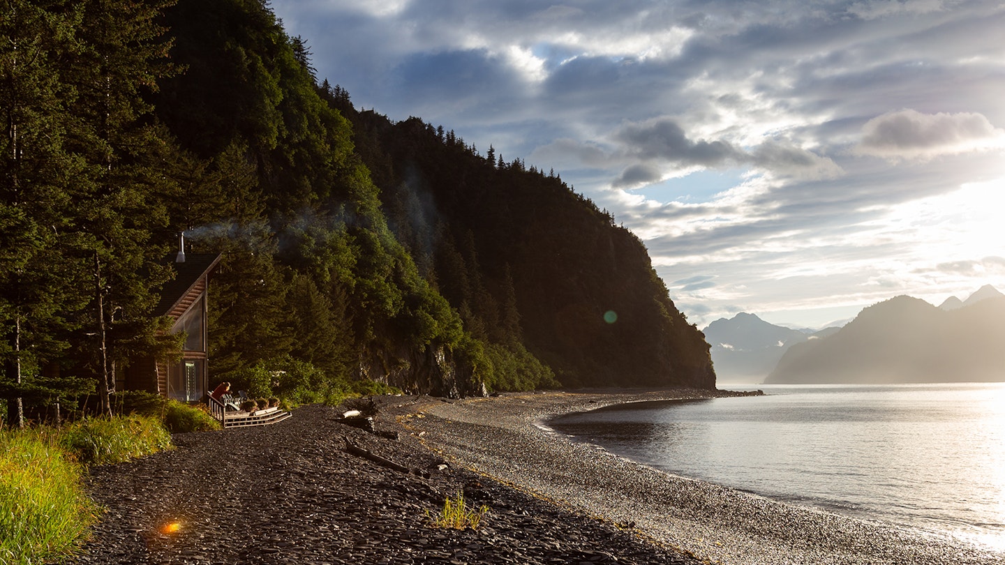 A light rain falls as I disembark the ferry from the mainland town of Seward, Alaska, and step down the gangway to the black-pebble beach. Twin peaks bracket the shore, forming a protected cove lined with spruce. Driftwood is scattered along the waterline like matchsticks. This is Fox Island, Alaska, my home for the next few days. Just under three and a half miles in length and barely a mile wide, the island is a dot in the fjords and bays that line southern Alaska’s Kenai Peninsula.