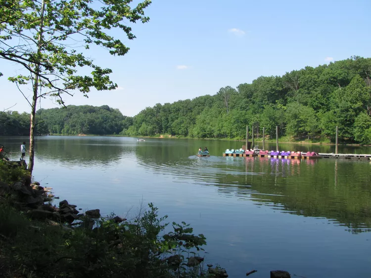 Lake Needwood is a scenic 75-acre lake located in Rockville, Maryland and is part of Rock Creek Regional Park. This stunning destination offers various recreational activities, including rowboat, canoe, and pedal boat rentals, in addition to pontoon boat rides. Fishing is allowed with a valid license. The park features a visitors center, snack bar, numerous picnic areas, hiking trails, playgrounds, an archery range, and a golf course. Moreover, the Rock Creek Hiker/Biker Trail kicks off at Lake Needwood, extending 14.5 miles into Washington, DC. Thrill-seekers can enjoy the unique Go Ape Treetop Adventure, designed for adventurers aged 10 and up. Lake Needwood Park stands as one of the prime recreational attractions in Montgomery County, Maryland.