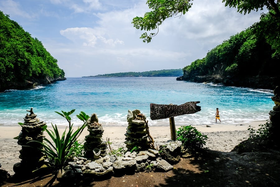 One of the most popular places in Nusa Penida is easily Crystal Bay, but just a 20-30 minute walk over the hill from Crystal Bay is a second beach with nicer sand and fewer people.