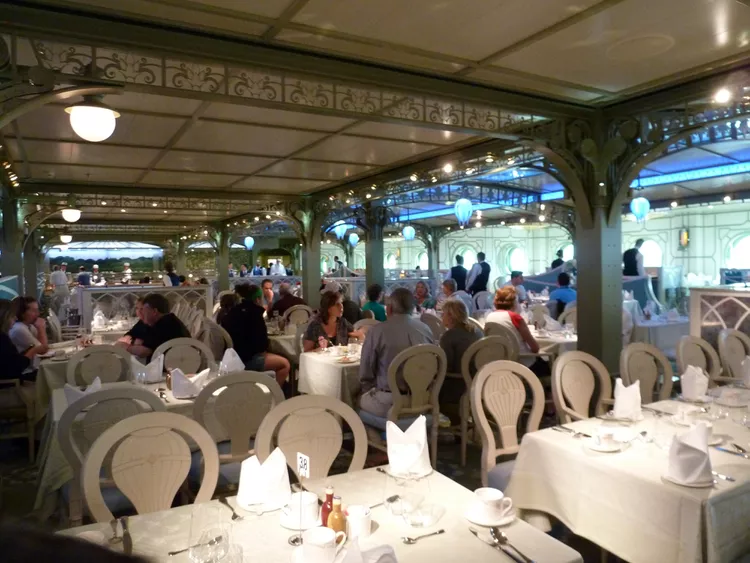 • Royal Palace: An elegant restaurant inspired by classic Disney films, featuring ornate marble floors, luxurious carpets, and delightful dishes fit for royalty, including beef Wellington and crowned rack of lamb. Guests enjoy continental cuisine in a beautifully themed setting.
