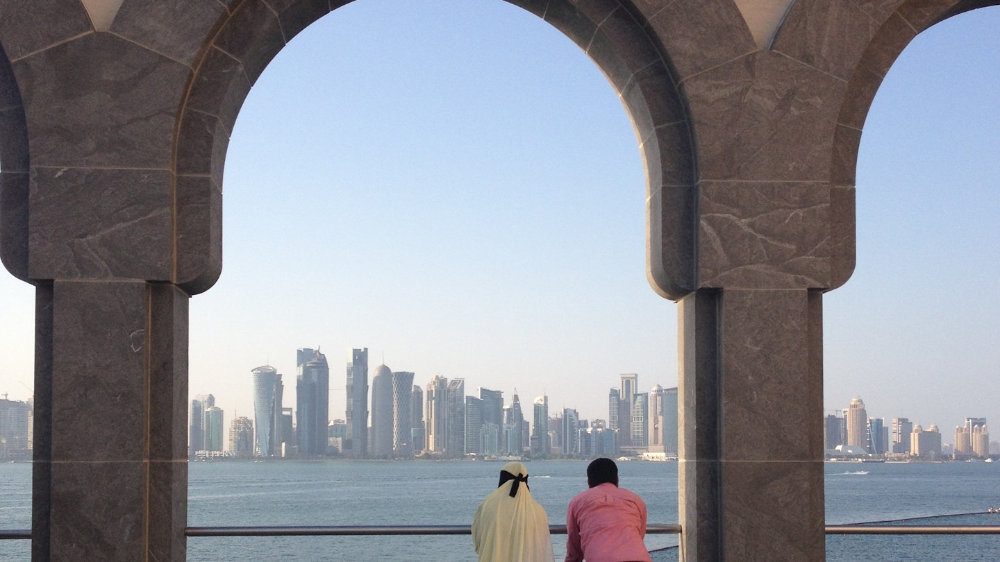 A couple admire the Doha skyline from outside the Museum of Islamic Art © Helen Elfer / GoTravelDaily