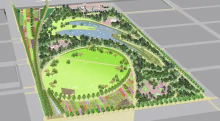 While the specifics are still being finalized, the plan envisions a spacious grand lawn on the northern side of the upper section, along with a large lake at its center. A cafe will be situated just north of the stage on the grand lawn, with play areas positioned between the lake and the lawn. The lower section will feature sports fields in both the northern and southern areas, while the central part will include wetland gardens and a dedicated dog run.