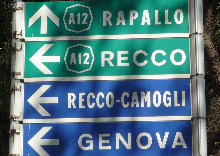 Autostrada highways are indicated by an “A” followed by a number (like A1, the major autostrada connecting Milan and Rome). Notably, signs directing you toward the autostrada are green.