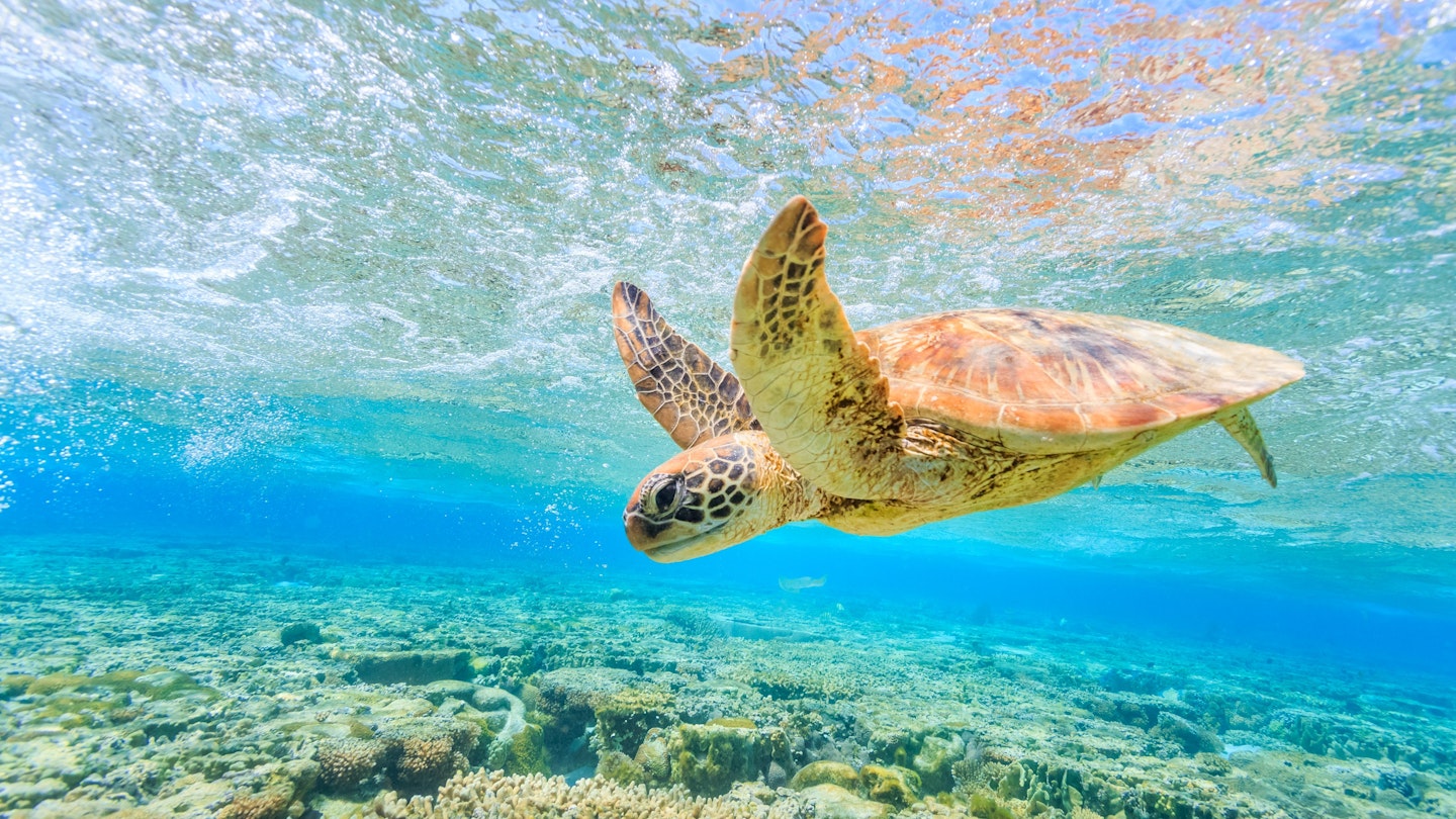 The University of Queensland’s CoralWatch program provides participants with a coral health chart to match and document coral colors while snorkeling or diving, submitting results via the CoralWatch app or website. Other initiatives include Redmap and Project Manta, where you can share images to help build databases of uncommon species and manta rays, respectively.