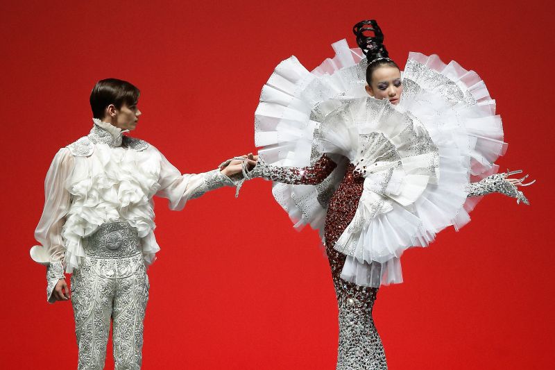 Among the most established Chinese designers is Guo Pei, who designed Rihanna’s striking dress at the recent Met Gala. She has been creating over-the-top custom creations since the late 1990s, including 280 looks shown at the 2008 Beijing Olympics opening ceremony.