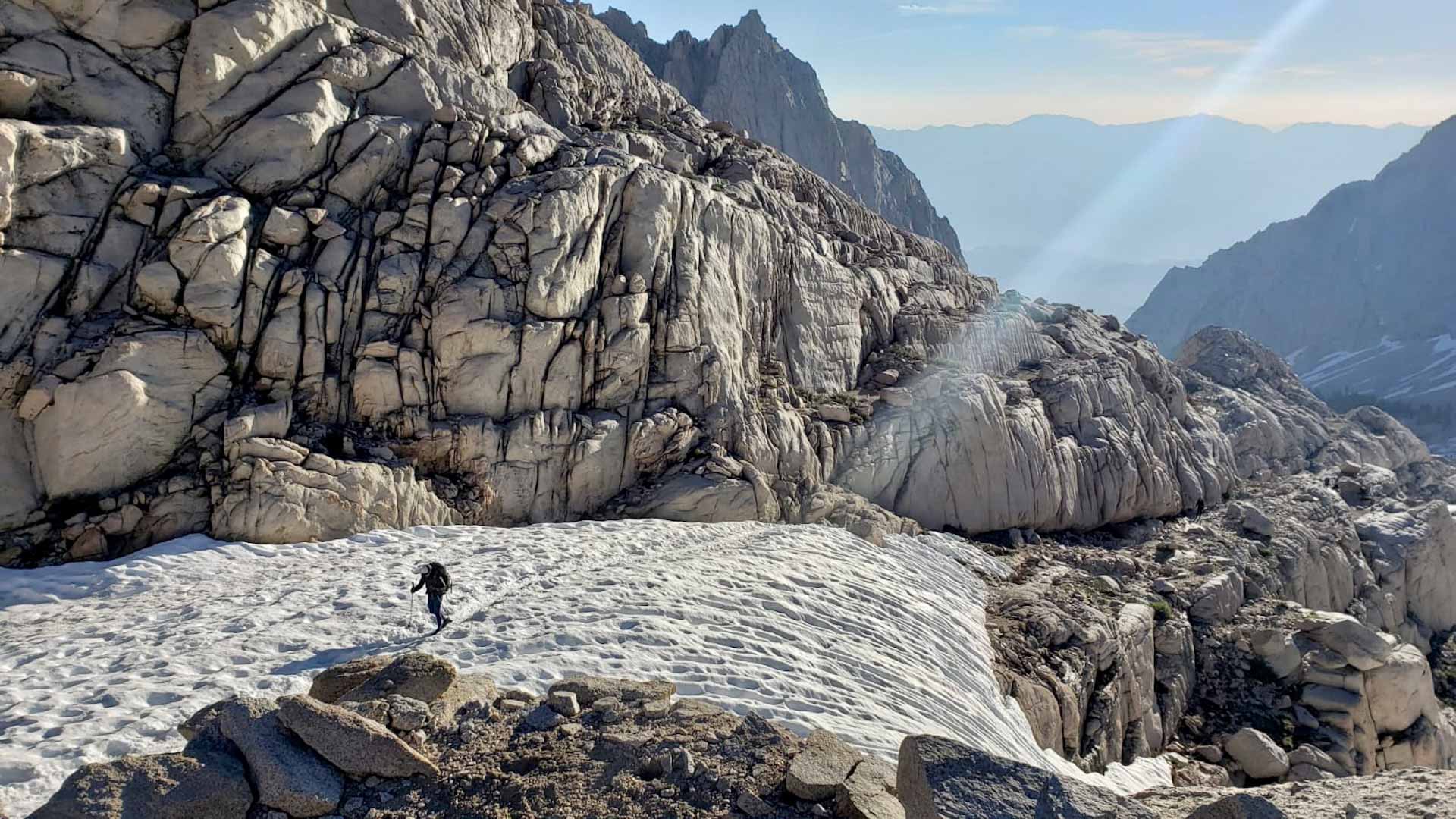 The Mount Whitney Trail is well maintained and does not require technical mountaineering experience during late summer and early fall. However, from late October to early July (depending on snowpack), parts of the trail can be snow and ice-covered. Therefore, when snow and ice are present, it is crucial to be equipped with an ice axe and crampons or micro-spikes, and to be knowledgeable about their use. Hikers should also be adept at route finding and aware of snow bridge dangers.
