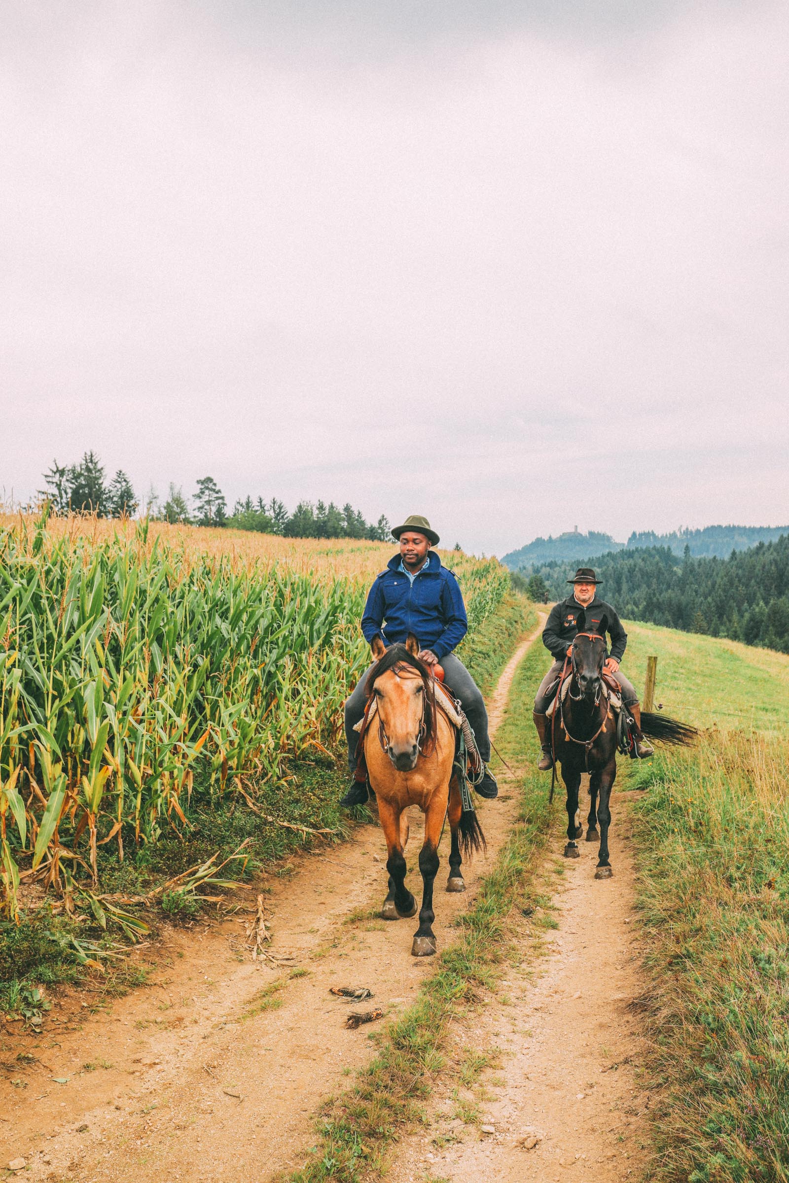 We had no designated plans for that evening beyond a horse and carriage excursion through the hills. Following a quick beer, we boarded the carriage amidst enthusiastic locals, eager to showcase the beauty of Mühlviertler Alm.