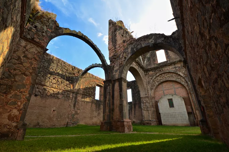 The group proceeds to admire the remains of La Iglesia de la Preciosa Sangre, a large cathedral that fell into disrepair during the Mexican Revolution and was never completed. Visitors can also explore the vibrant main square and visit the Museum of Archaeology, which is situated in the former high school building.
