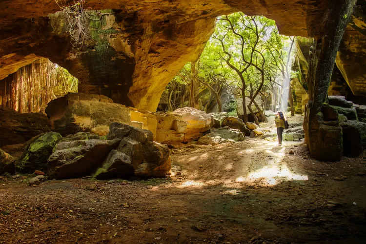 Tourist at Kanheri caves. Hira Punjabi/Getty Images