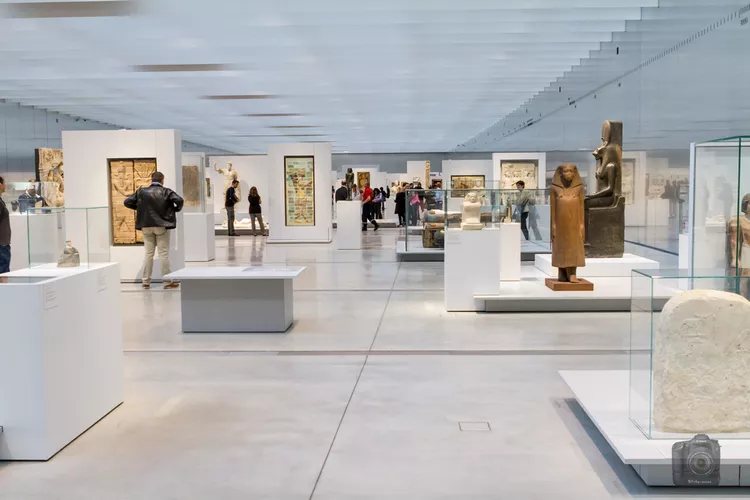 The museum is divided into distinct sections. Visitors are encouraged to start at the Galerie du Temps, the main gallery which showcases 205 significant artworks spread over 3,000 square meters without any dividing walls. As you enter, the expansive space filled with unique masterpieces creates an impressive ‘Wow’ moment. The gallery illustrates the ‘long and visible progress of humanity’ that is emblematic of the main Louvre in Paris.