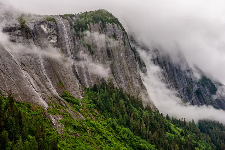 Designated as a National Monument in 1978, Misty Fjords is nestled within the vast Tongass National Forest in Southeast Alaska. The area is renowned for its awe-inspiring granite cliffs that rise dramatically toward the sky, veiled by misty clouds that blanket the surrounding lush rainforest. Consequently, wildlife thrives here, and the tranquil waters provide a serene escape from the outside world. The only interruptions in this peaceful environment are the many flight-seeing planes circulating like giant mosquitoes.