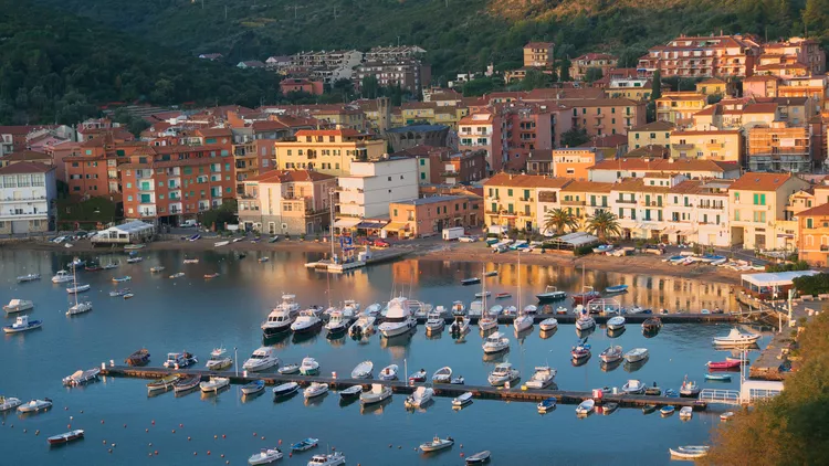 Porto Santo Stefano is one of the two picturesque port towns. The remarkable 16th century Fortezza Spagnola, or Spanish Fort, stands prominently in the historic district. This fort has been beautifully renovated, featuring the unique Museum of the Masters of the Axe and the Submerged Memories exhibit which showcases archaeological treasures from the sea. Visitors can also enjoy an aquarium, a lovely seaside promenade, and convenient ferry access to the enchanting islands of the Tuscan archipelago.