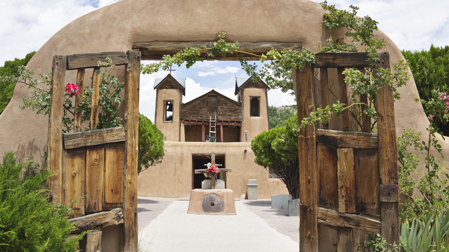 Talpa is the last village on the High Road before reaching Taos. There’s not much to see beyond a charmingly tiny church, perhaps 15 feet tall, featuring an impressive name: Nuestra Señora de San Juan de los Lagos del Rio Chiquito. The church isn’t open to visitors, yet its rounded bell tower and blue-tiled entrance are worth a glance.