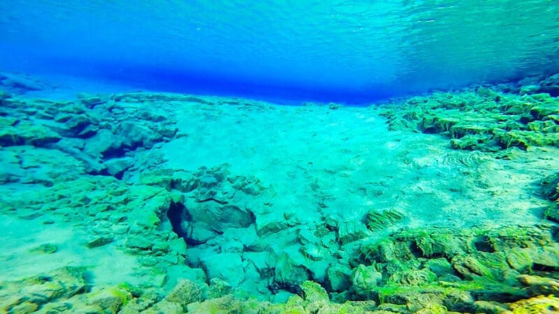 The Silfra fissure is essentially an opening in this crust filled with ice-cold glacial water. Notably, it is the only location in the world where the ridge rises above sea level. Consequently, the Silfra has been designated as a UNESCO World Heritage site, nestled in the heart of Þingvellir National Park.