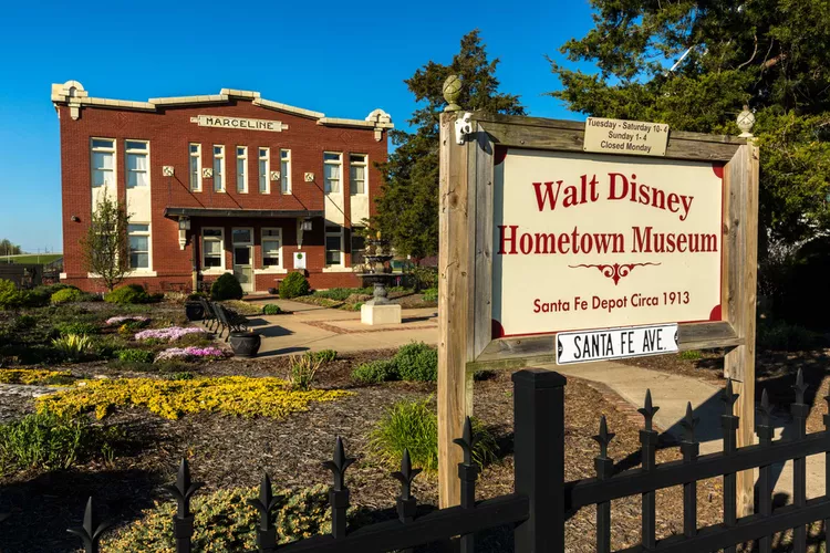 Walt Disney Hometown Museum (120 E. Santa Fe Avenue): The Walt Disney Hometown Museum was established in 2001 as part of Marceline’s celebration of Walt’s 100th birthday. Most of the museum’s collection comes from Walt’s sister, Ruth Flora Disney Beecher, and includes 4,000 artifacts donated by the Disney family. Located in the Santa Fe train depot where Walt arrived in Marceline all those years ago, the museum houses personal letters and photographs, Mickey and Disneyland memorabilia, and Walt Disney’s school desk with the initials WD carved into the wood.