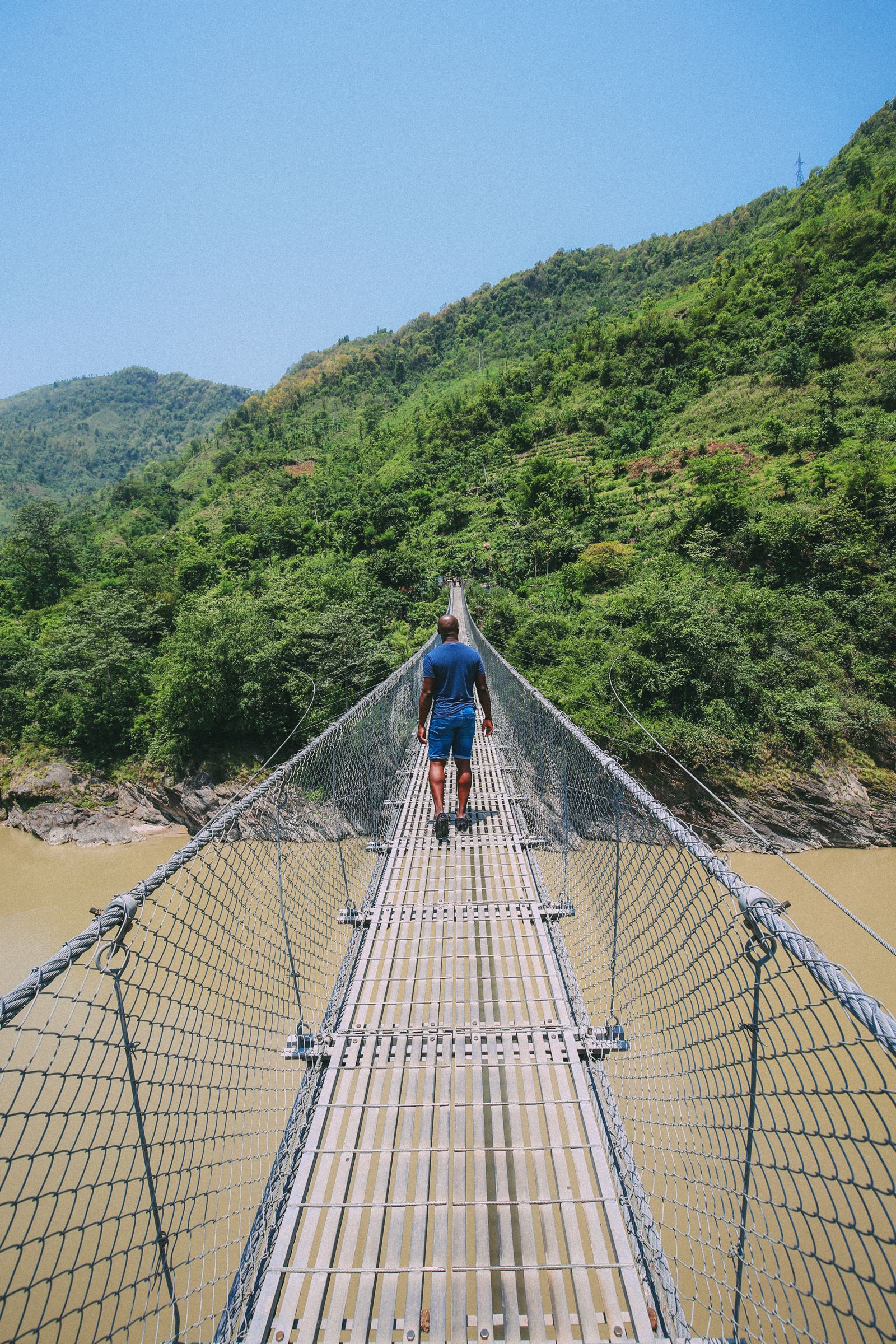 We followed the Trishuli River, which flows from Tibet, stopping occasionally for drinks and to stretch our legs while taking in the beautiful surroundings. One of our special stops was to visit the longest suspension bridge across the river. I must say, walking on that bridge is an experience, especially if you’re scared of heights; it sways a little but never feels unsafe, designed and constructed professionally.