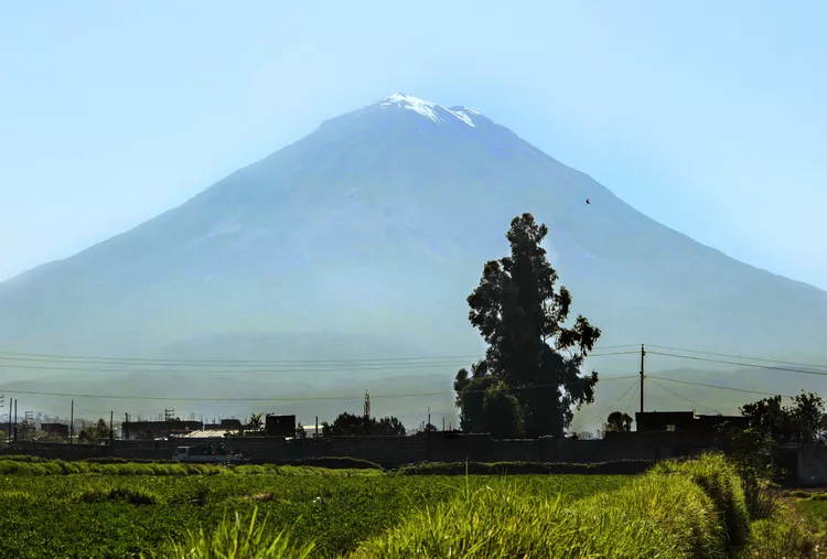 The coastal deserts continue south through Nazca and to the Chilean border. The southern city of Arequipa lies between the coast and the foothills of the Andes, where deep canyons cut through the rugged landscape and towering volcanoes rise from the lowland plains.