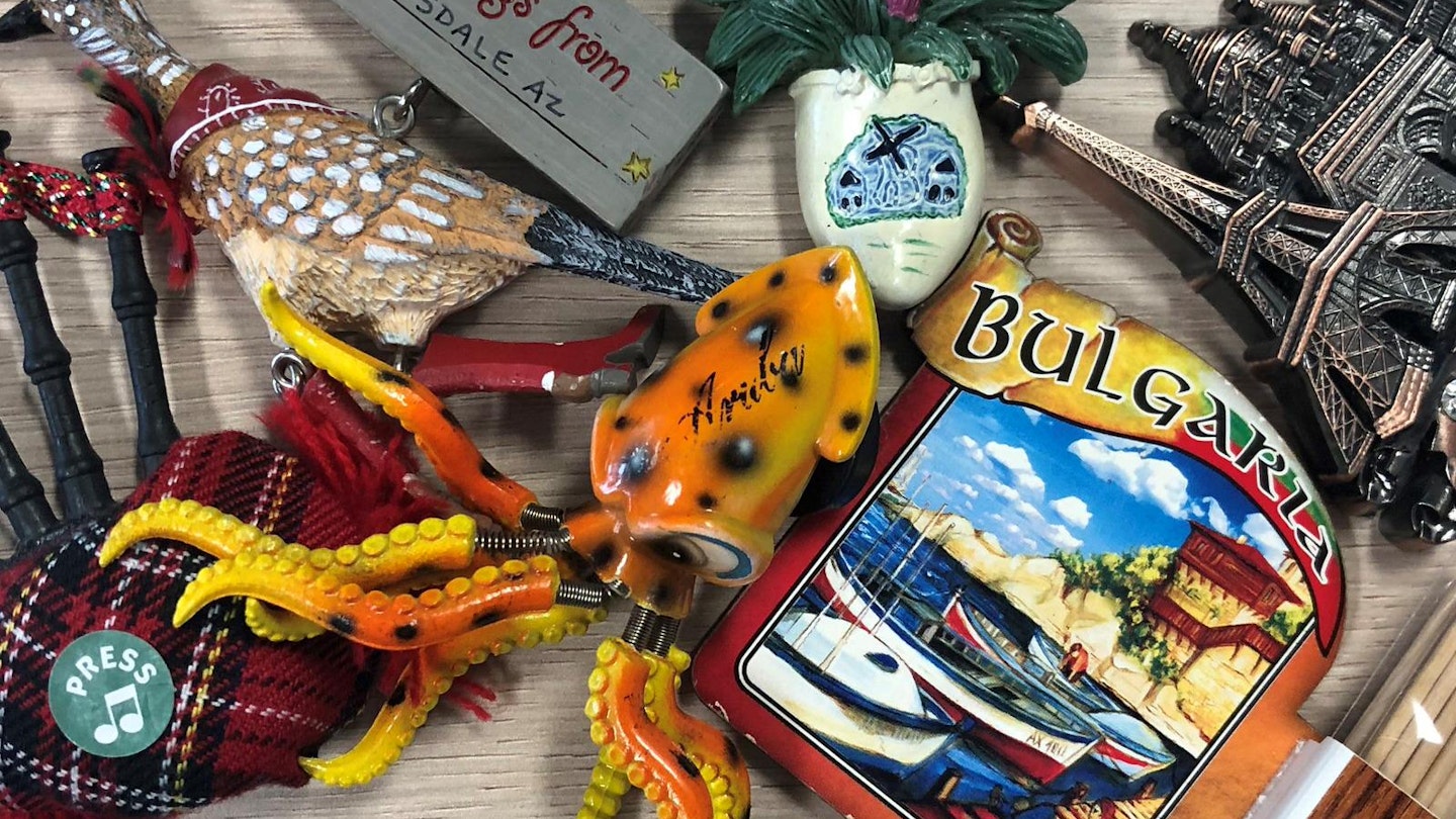 Initially, it began with an oddly polite tulip-filled clog from Amsterdam that read ‘Regards, Holland’, which has now grown to approximately 150 unique magnets. When scouting for our next potential addition, we adhere to several strict guidelines: it must include the destination name, be the tackiest option available, and not be offensive. Highlights of my collection include a wobbly-legged octopus from Aruba, a toothpick holder from Bulgaria, and a set of bagpipes from Edinburgh that, when activated, still performs a lively rendition of Scotland the Brave.