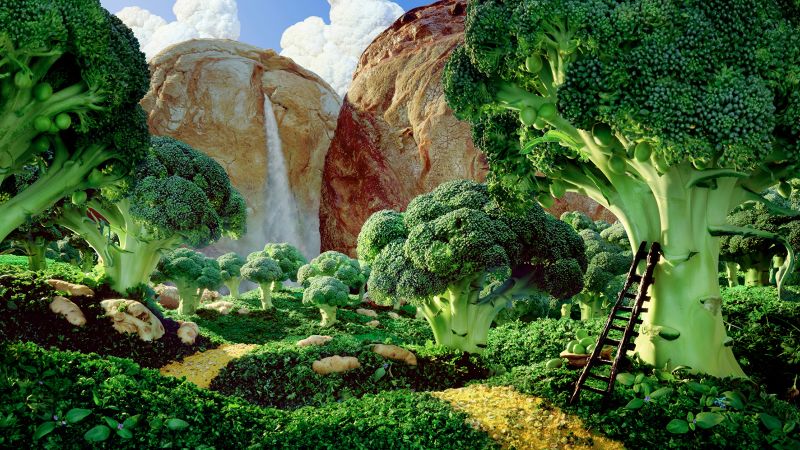 The leftover food from shoots is shared with the team or given to local homeless shelters. Warner exhibits his work around the world and now has two books on the market. For more info, visit his website: Carlwarner.com.Chinese Junk Boat — Photographer Carl Warner creates edible landscapes by using food as an art material. The advantages? There’s a vast choice of ingredients in terms of shapes, textures, and colors, he says. The disadvantage is that the items perish easily, especially under hot studio lights.Warner says he finds food as a source of inspiration because it’s similar to larger aspects of the natural world and it’s something people have a natural affinity with.“My work is being used as a vehicle to promote healthy eating, nutritional education, and a good diet,” says Warner.Photographing, drawing, and designing makes Warner feel the same escape as when he drew spaceships as a child, he says. This sweet image is the cover of his children’s book, “A world of food,” which is now being translated into Japanese.Warner says his foodscapes begin as a sketch. From there, he decides which ingredients will be used. A food stylist and model maker then help build the scene. It can take several days and the scenes are sometimes shot in layers in order to work quickly with fresh produce, he says.To Warner, making foodscapes connects nature’s beauty with nature’s bounty. “The simple pleasures of growing food, cooking a meal, and sharing with friends is what unites us in our humanity,” he says.If anything’s going to convince a picky kid to eat his celery, this is it. “I like to make people smile,” says Warner. “The work is whimsical and fun. I call it ‘the pleasant deception’.”Warner, seen here shooting one of his foodscapes, describes himself as a photographic artist who makes landscapes out of food, although he does create scenes out of other materials like clothes and stationary.Simplicity and fresh ingredients are key to Warner’s creations. He says he’s a big fan of Italian cooking.Before pursuing this type of photography, Warner says he lacked the inspiration and confidence he has now.When looking for new inspiration, Warner travels to places he’s never been to seek out new imagery and ingredients.Warner says his early influences were surrealist painters. As an only child, he often created other worlds to escape the boredom of being alone. Fishscape is Warner’s favorite image, but was one of the most difficult and smelliest scenes to build.Making foodscapes has inspired Warner to be more creative in the kitchen, he says. The visual presentation of his work inspires him to make corresponding taste combinations.Warner says London’s Borough Market offers inspiration in the form of seasonal produce. He also loves discovering new things in the Asian markets of Brick Lane and China Town in London’s West End.This photo, created with portobello mushrooms, was Warner’s very first foodscape.Because coriander and flat leaf parsley last for only a few minutes, they go into a shot right before the photo is taken, says Warner. Alternatively, he uses a lot of curly kale as it looks good for hours.When it comes to photography versus food, Warner’s interests lie more with the former. “If I was as good a cook as I am a photographer then I would probably be a chef,” he says.The average cost to create a single foodscape is a few hundred dollars but varies depending on the size of the scene and how expensive or exotic the ingredients are.