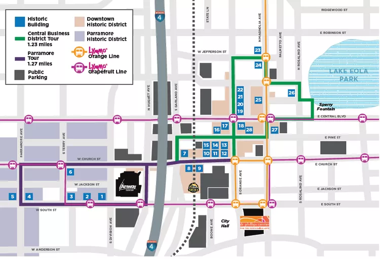 This free self-guided walking tour takes you past 28 buildings of historic importance throughout two adjacent downtown neighborhoods — the Central Business District and Parramore. The buildings, erected between the 1880s and 1940s, showcase Orlando’s architectural evolution. Moreover, the tour also weaves through many lively areas of western downtown, providing a chance to see the contemporary Orlando.
