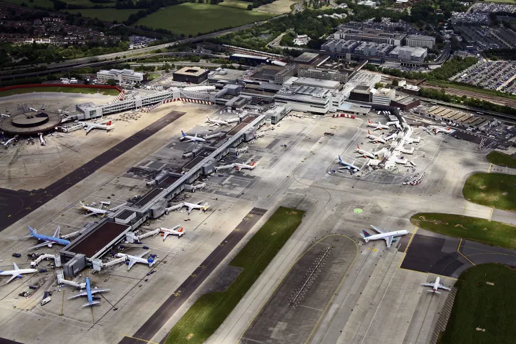 Gatwick is located approximately 30 miles to the south of central London. London Gatwick (LGW) is the second largest airport in the UK after Heathrow. The two terminals, North and South, are linked by an efficient monorail service, with a journey time of two minutes.