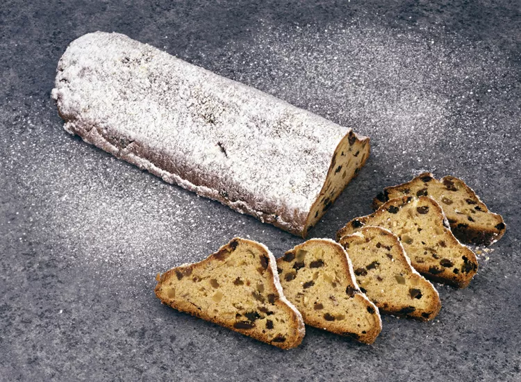 Stollen, a traditional German Christmas cake, is a must-have during the festive season. Dense and moist, it is packed with fruits, spices, and nuts, all topped off with powdered sugar.