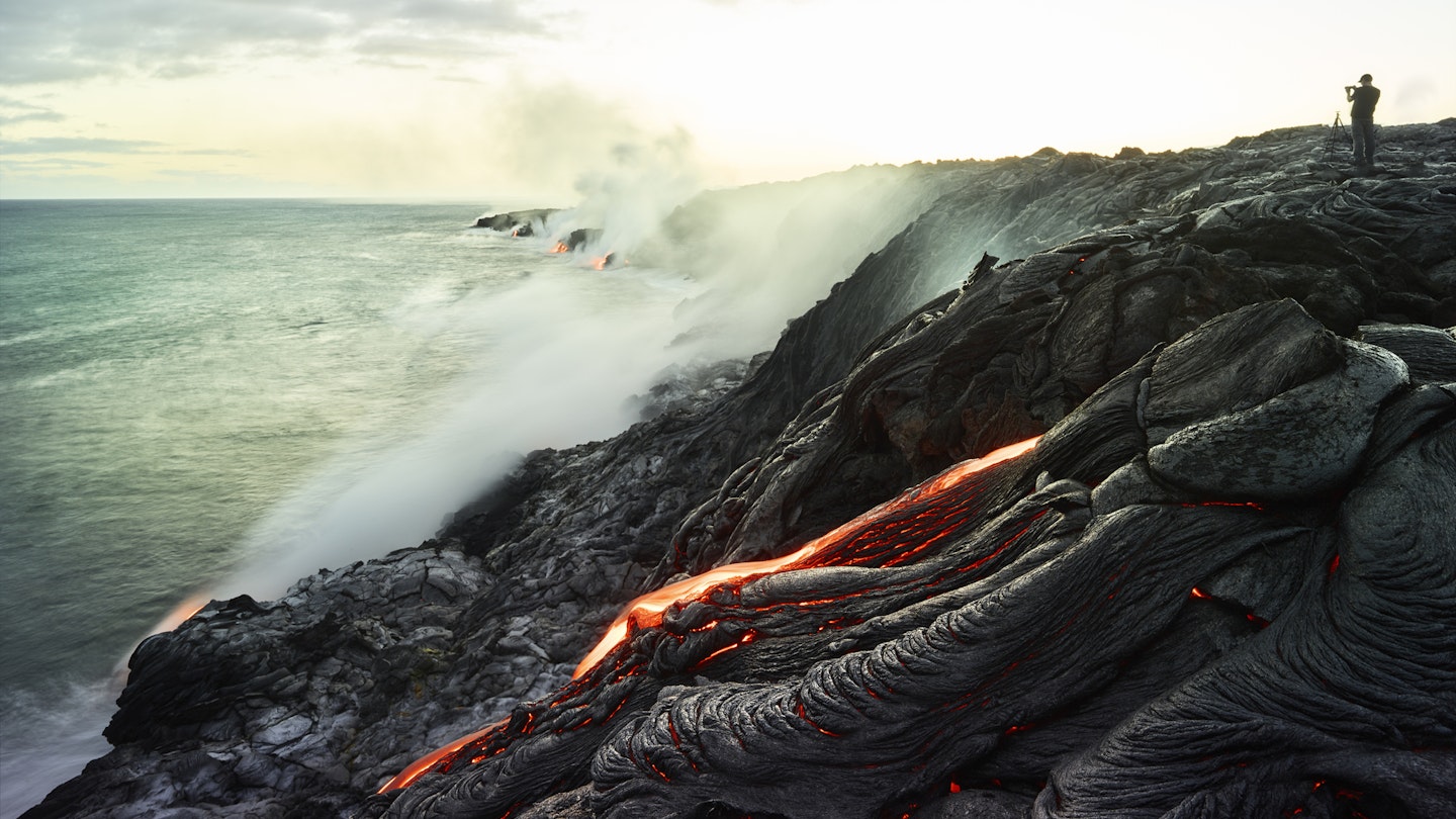 - Frequent eruptions send lava into the Pacific Ocean, creating new land as the glowing liquid rock cools.