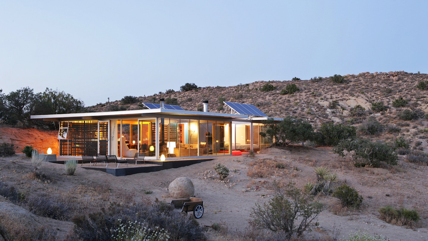 This solar-powered marvel tucked away in Pioneertown is a modern wonder that seamlessly integrates indoor and outdoor living. With sliding glass doors and floor-to-ceiling windows, this retreat offers breathtaking views of the desert landscape. Additionally, the remote location makes social distancing effortless, ensuring an ideal environment for those looking to work or unwind in peace. Sleeps four.