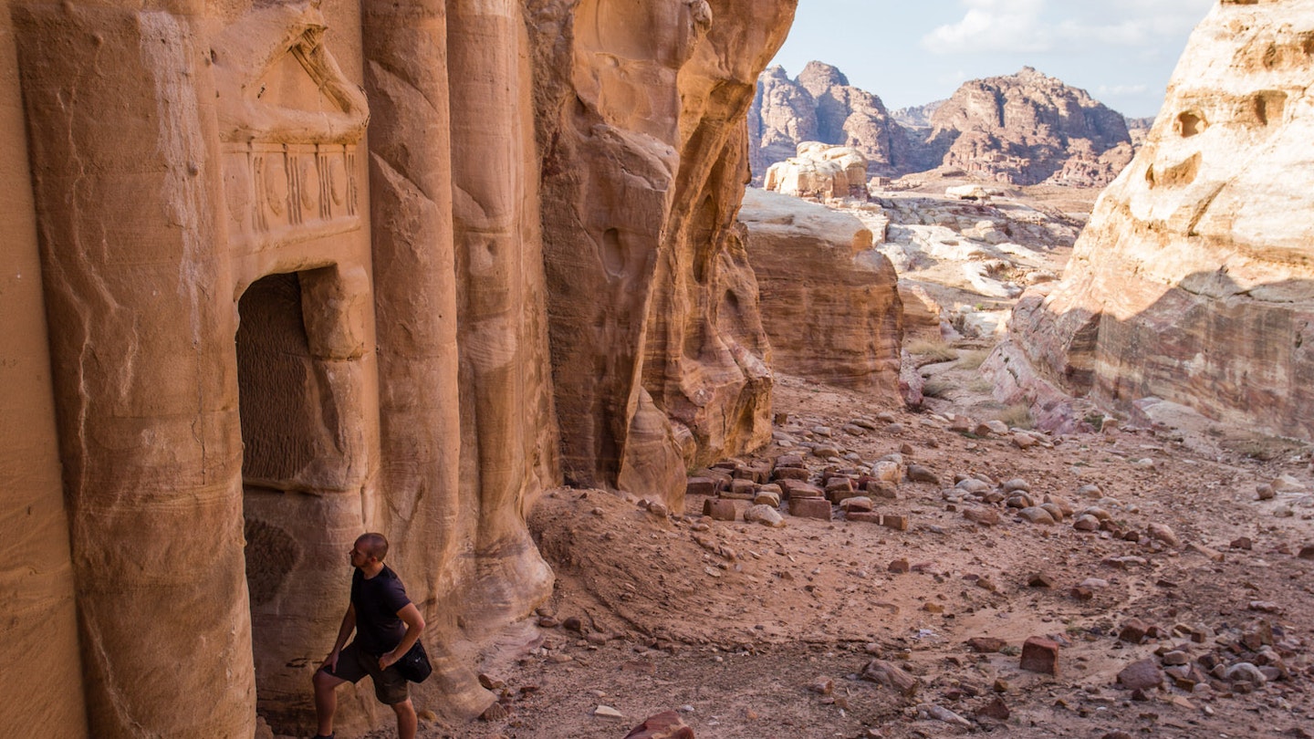 Adventurous travellers often deviate from the main trail through Petra to climb to the High Place of Sacrifice, an area of temples with stunning views of the valley below. It’s well worth the trip. However, on the way down to reconnect with the main route, push a little further. The walk back past Wadi Farasa offers ample opportunity to sit down for tea with a local family or explore tomb complexes where little more than goat droppings mark the passage of time. Either experience adds a certain depth to Petra that most visitors never make time for.
