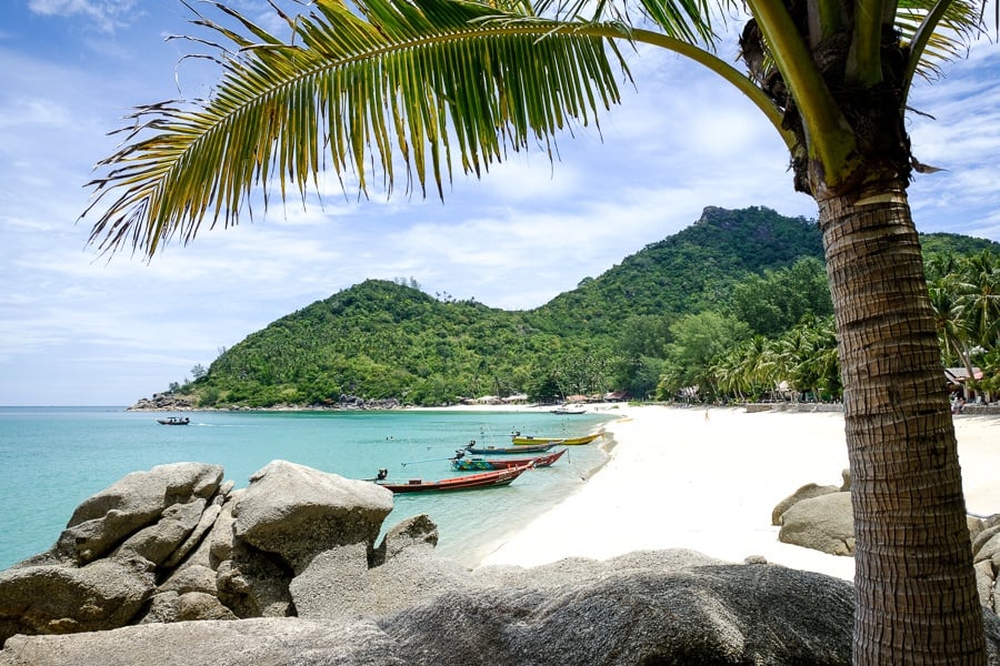 The most effective method to reach the beach is to hire a longtail boat from Chaloklum Beach or Haad Khom Beach. The boat journey takes approximately 15 minutes and costs around 150 baht (~$5 USD) per individual, each way.