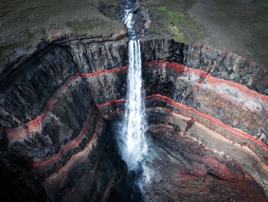 Hengifoss Waterfall is one of the most spectacular waterfalls in Iceland, despite the stiff competition from Dynjandi and Haifoss. Its striking appearance, characterized by striking lines of red clay nestled between rock layers, creates a truly otherworldly aesthetic that fascinates—almost as if it belongs to another planet.