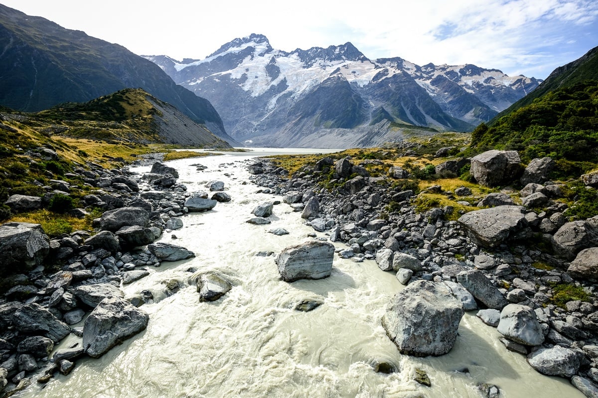 As you round the corner, you’ll be greeted by the sight of Mount Cook, the tallest mountain in New Zealand, with each step drawing you closer to this impressive giant.