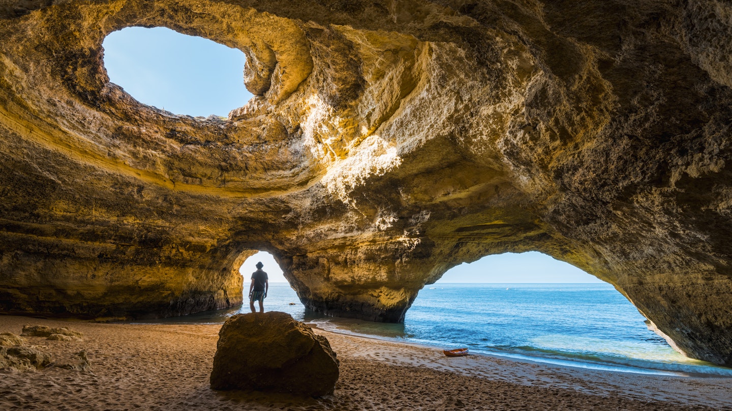 Anchoring the south of Portugal, the Algarve is famous for its cliff-backed beaches, mouthwatering seafood, and picturesque villages. Additionally, it boasts a remarkably easy-going atmosphere that welcomes every type of traveler.