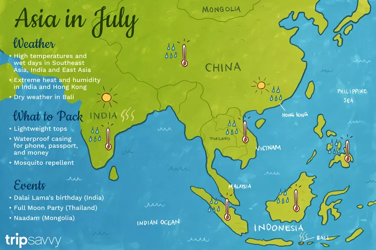 Traveling in July across Asia guarantees an experience filled with high humidity and rain, particularly in regions impacted by the Southeast Monsoon. While some areas may be hotter and wetter, your travels can still be rewarding if you plan accordingly.