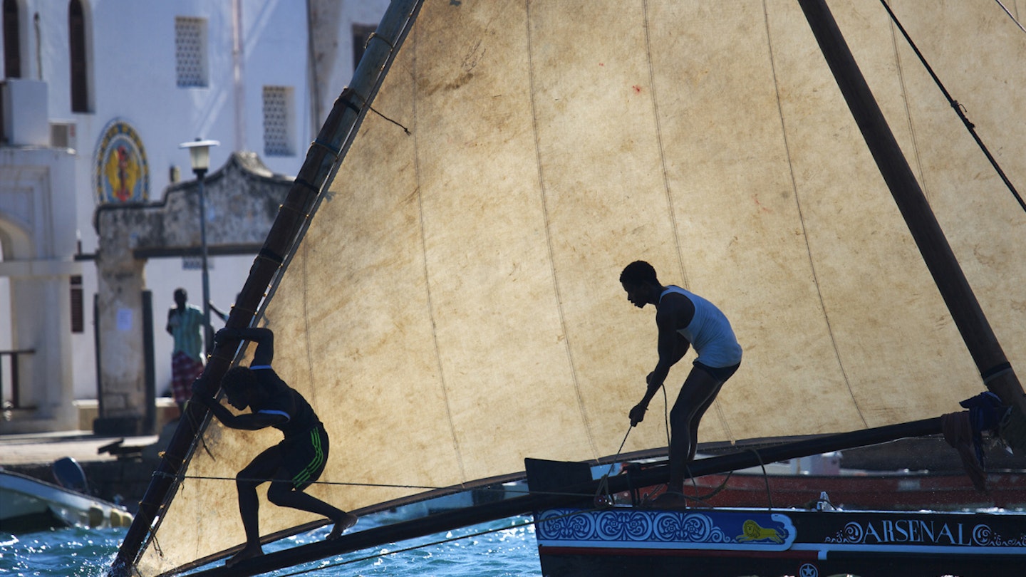 “This is part of our culture. Our grandfathers did it, our fathers did it, we do it,” he says. “But it is hard work. You need to be strong like a crab to put up the sail. If you are not, the dhow will throw you in the water.” He waves as his boat heads to the starting line. “It is OK whatever happens. It is a game to win. It is a game to lose.”