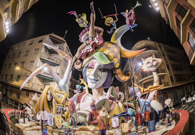 Imagine hundreds of intricate, colorful paper sculptures filling the streets of Spain’s third-largest city. Constructed in painstaking detail over several days, these finished products tower over the spectators marveling at them from down below.