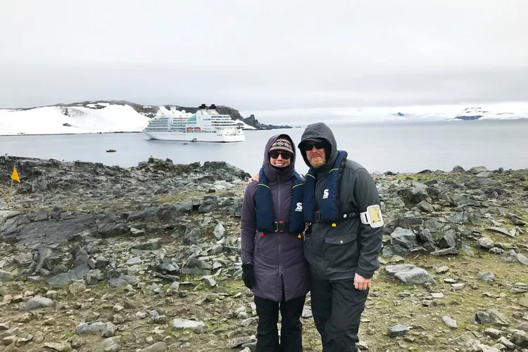 Throughout our journeys together, several experiences stand out distinctly. For instance, in 2018, we cruised to Antarctica, allowing Jon the privilege of claiming he has performed on all seven continents.